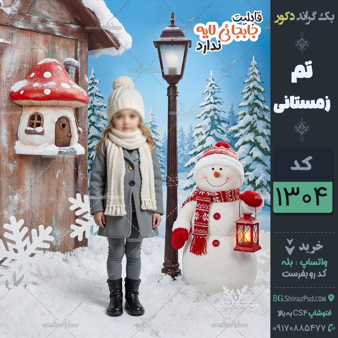 بک گراند زمستانی و کریسمس ، صحنه ای از یک خانه هابیتی دنج و پوشیده از برف با یک فانوس قرمز و یک آدم برفی خندان با کلاه سبز و شال قرمز، که در جنگلی برفی استراحت میکند. خانه دارای یک در گرد و یک فانوس است، با دانههای برف سفید و بزرگ که در اطراف پراکنده شدهاند، همه اینها زیر آسمان آرام زمستانی. زمین کاملاً برف است.بک گراند زمستانی و کریسمس ، در فصل خود طرفداران بسیاری دارد.